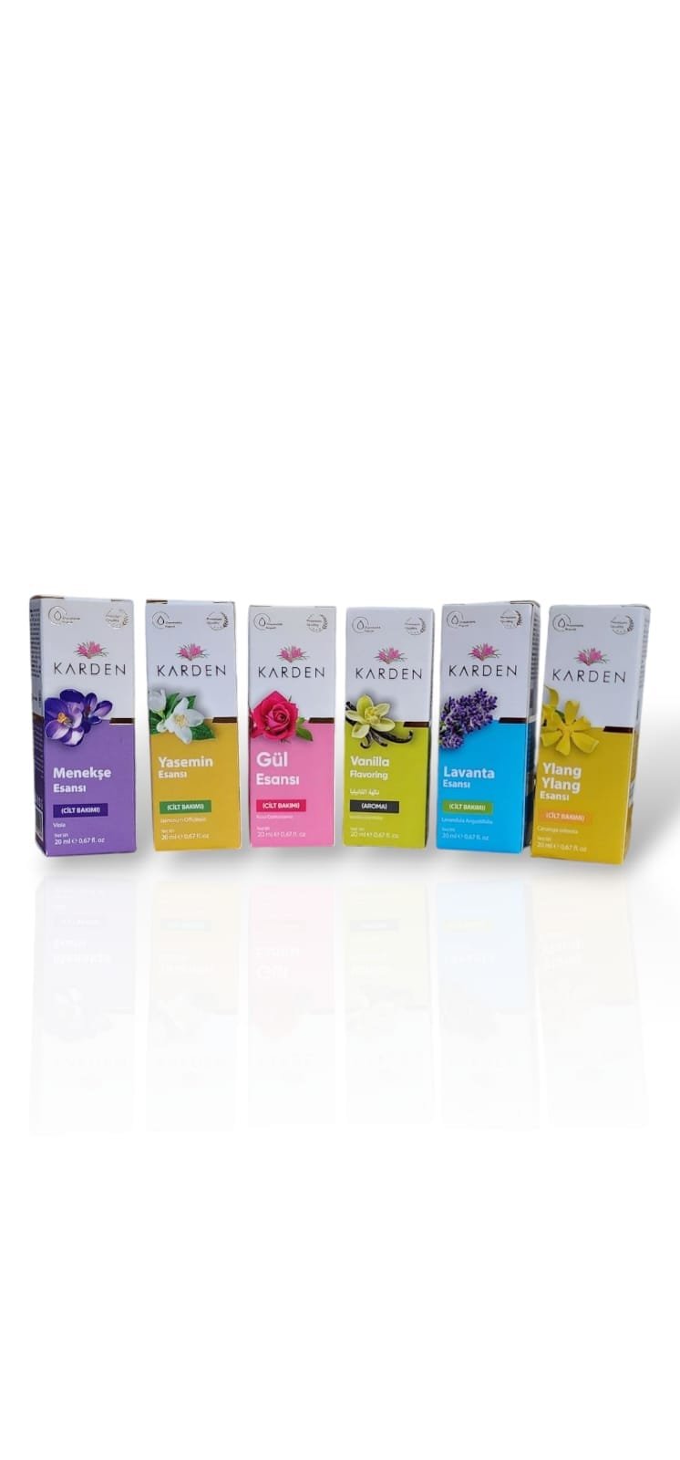 KARDEN 6’lı Karışık Esans Seti – Menekşe, Yasemin, Gül, Lavanta, Vanilya, Ylang Ylang | 20 ml x 6